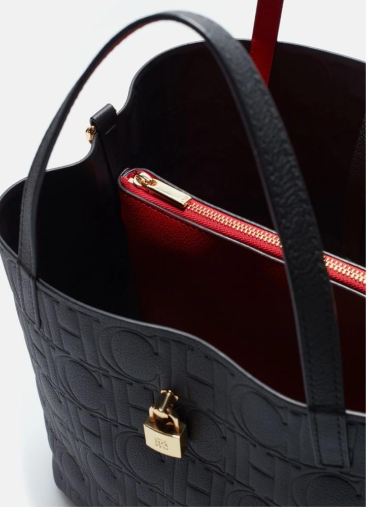 حقيبة Matryoshka Locked M مصنوعة يدويًا من جلد Sequoia بحبيبات منتظمة، ومزينة بشعارنا المنقوش مع الأحرف الأولى من اسم Carolina، وتتميز بقفل أمامي للإغلاق. تأتي بمقابض جلدية مما يتيح حملها باليد أو ارتدائها على الكتف أو عند الكوع.
